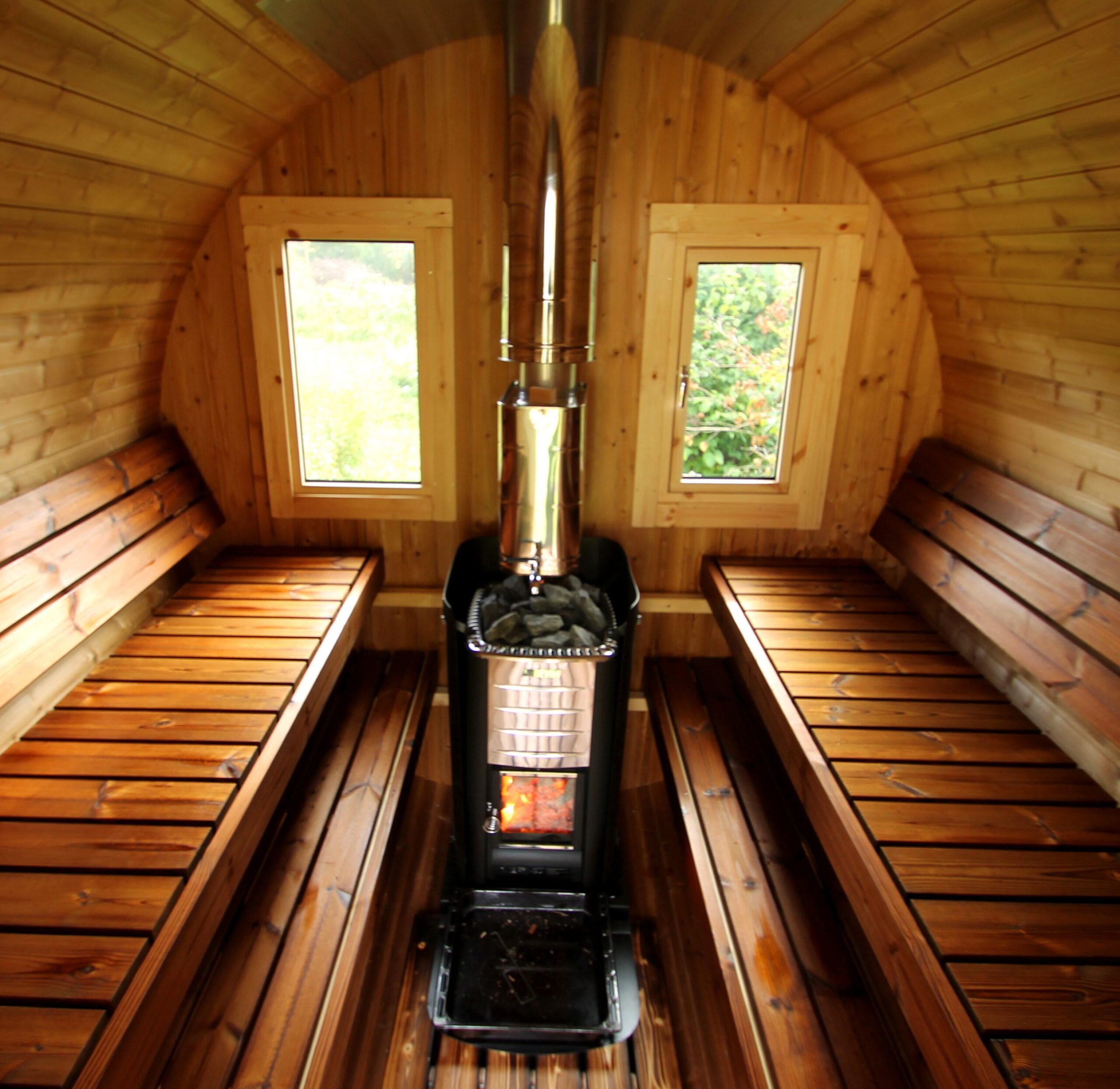 Võimas puu- või elektriküttega keris loob tõelise saunanaudingu igas ilmastikus, samas kui saunaruumi ümar kuju tagab kuumuse ja leili ühtlase jaotumise.